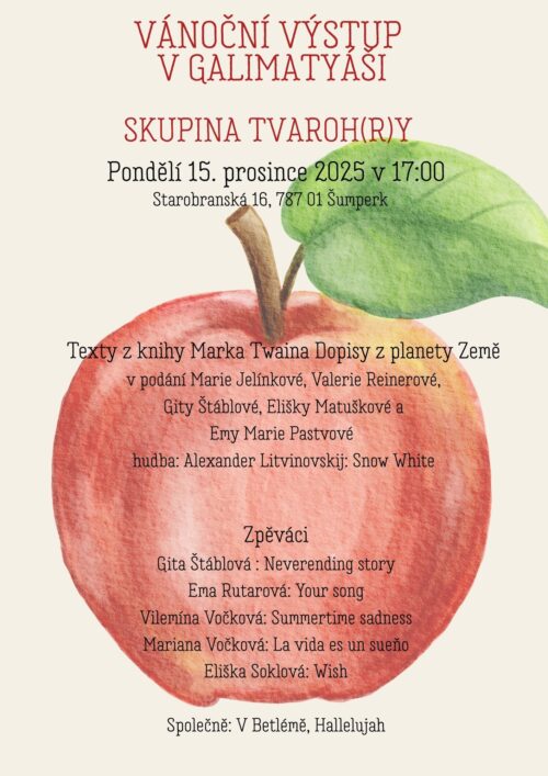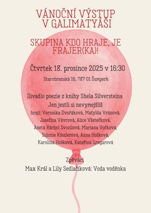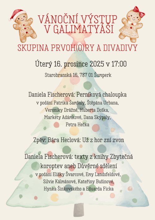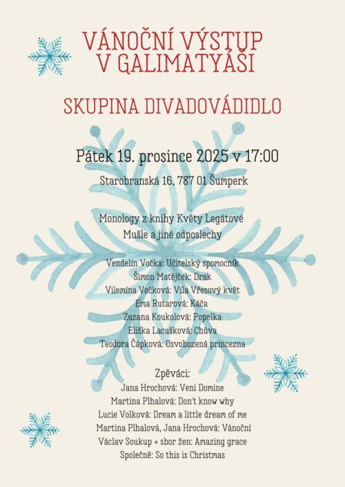 A na závěr našeho putování Jeseníky, vás túrou pěveckých a přednesových čísel provede skupina Kdo hraje, je frajerka. Těšíme se na Vás v klášterním kostele.