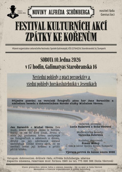 Nevšední pohledy z ptačí perspektivy a všední pohledy horskoslužebníků v Jeseníkách je první a zahajovací akcí celoročního festivalu. Nesmíte na ní tedy chybět, ať vám nic neunikne 🙂